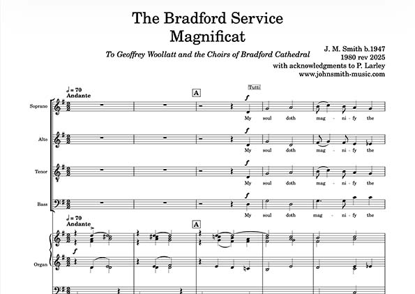 Written to celebrate Bradford’s City of Culture 2025. The Magnificat and Nunc Dimittis are closely linked, sharing a concluding Gloria that reworks material from the Magnificat’s opening. They open out of key with bold organ chords before settling into G major, with two soprano trios built over a descending bass line. A sustained G pedal conveys calm before increased movement leads into the Gloria.
